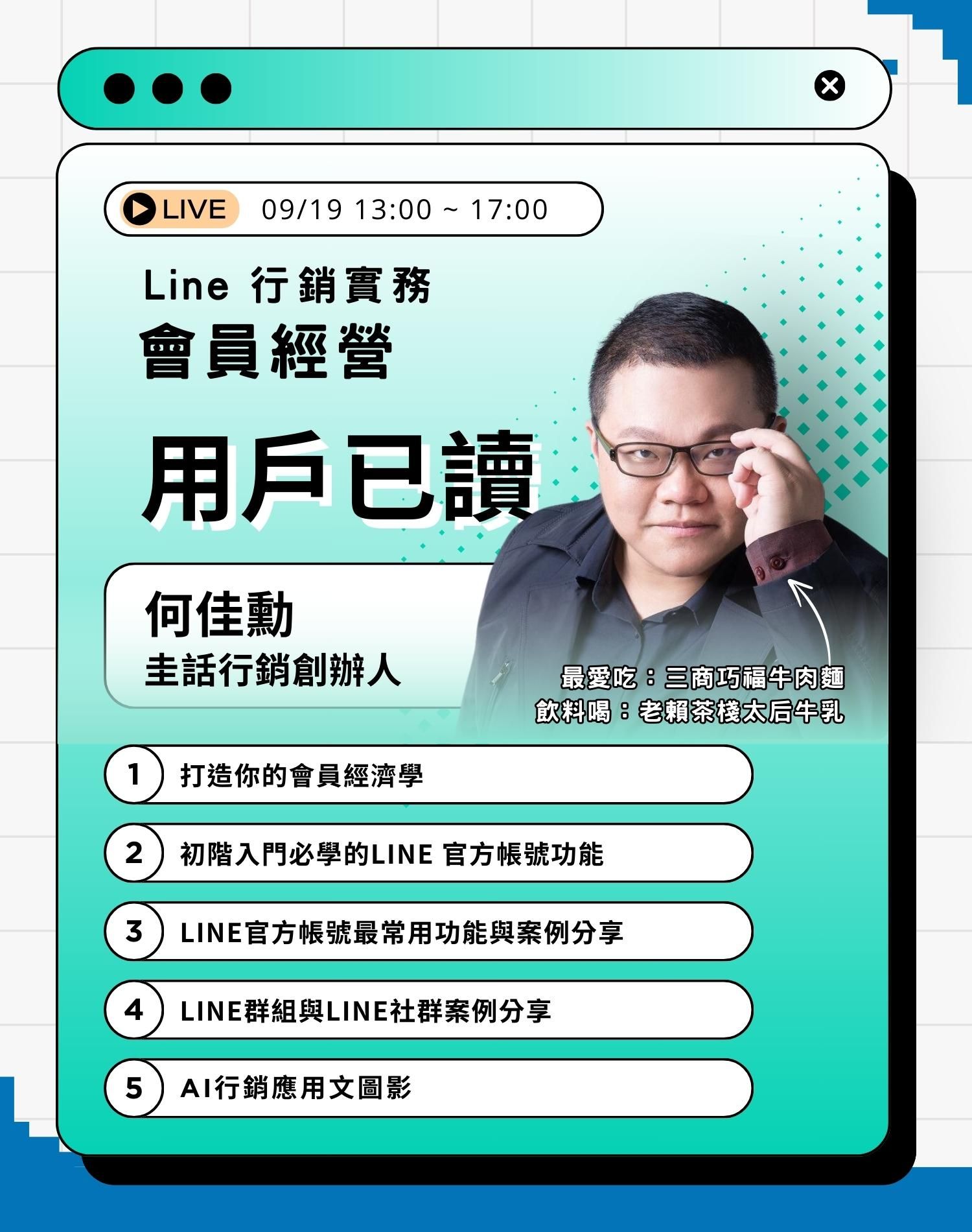 本次邀請到在 Line 領域打滾多年的 何佳勳(小圭) 老師,目前是「圭話行銷」的創辦人,定期舉辦行銷讀書會與行銷QA問答。