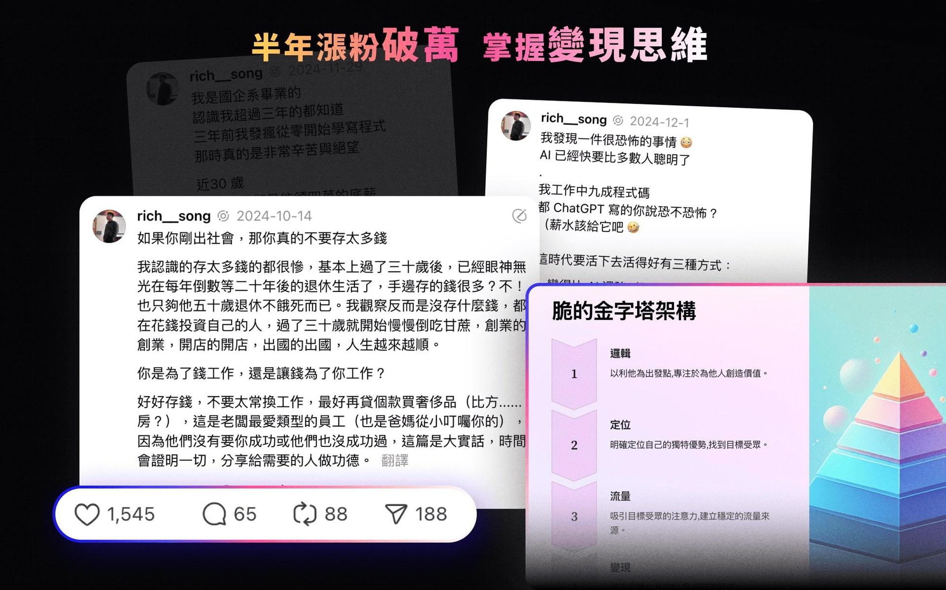 - 分享具體經營方法、內容創作要點與平台優化秘訣